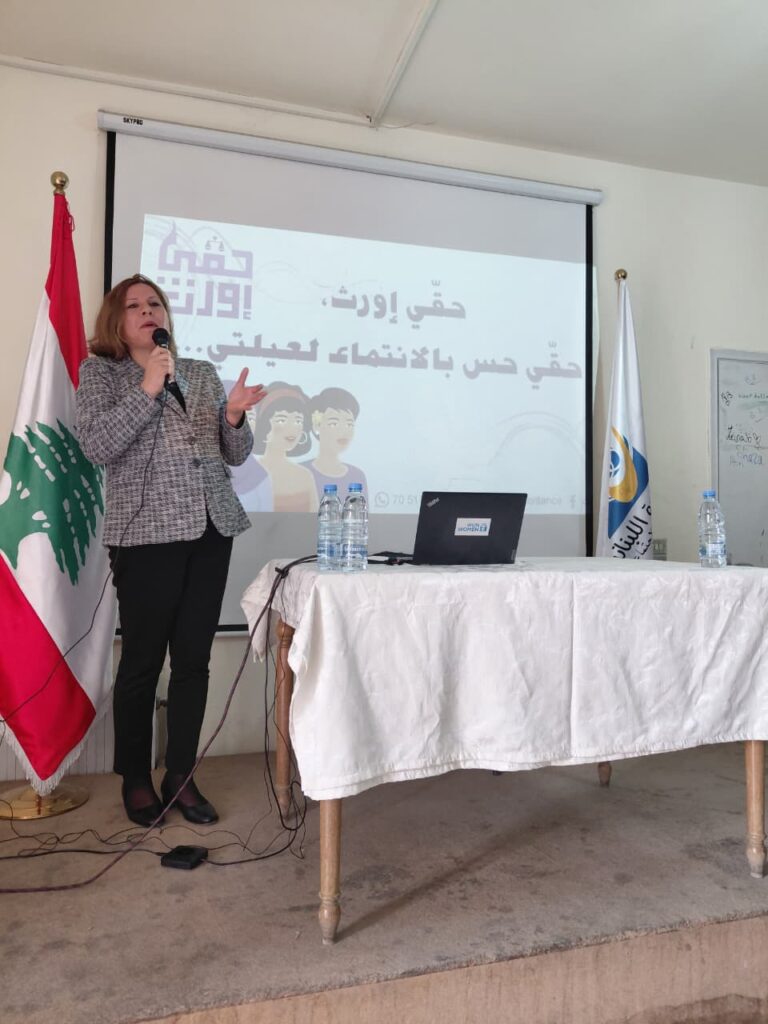 Dr. Naji Ali Ayoub, a specialist in local law, also intervened with a presentation on the inheritance legislation adopted by the various religious communities in Lebanon, both Christian and Muslim. He clarified how religious and sectarian legal frameworks view women and their inheritance rights, noting that Lebanese civil law establishes equality between men and women and grants women the same rights as their brothers. However, he emphasized that prevailing social beliefs and traditions across Lebanon’s communities often constitute the strongest barrier to the application of these laws or are used to circumvent them.